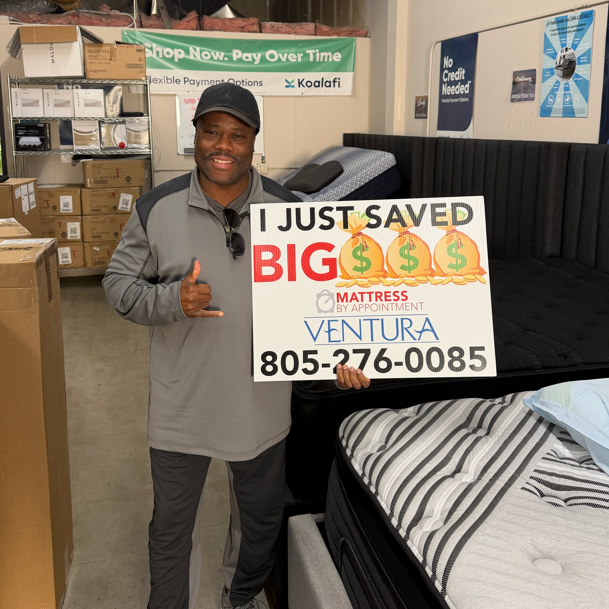 “Steven was amazing! No pressure, no games. He let us try every mattress and helped us pick the perfect one. We saved over $800 compared to the big stores. Same-day delivery too!”